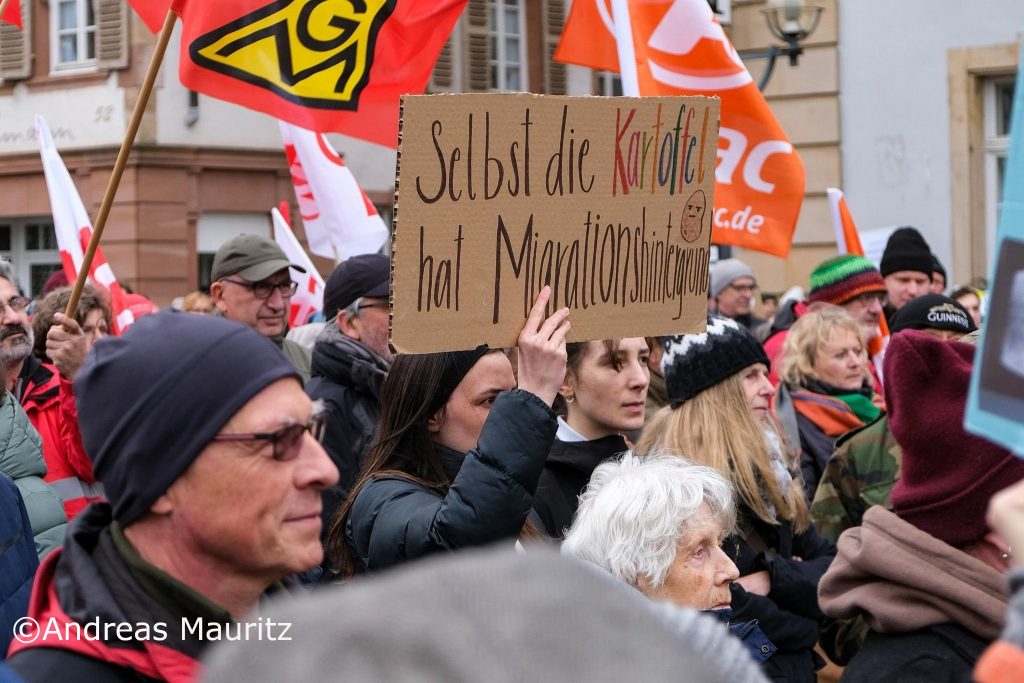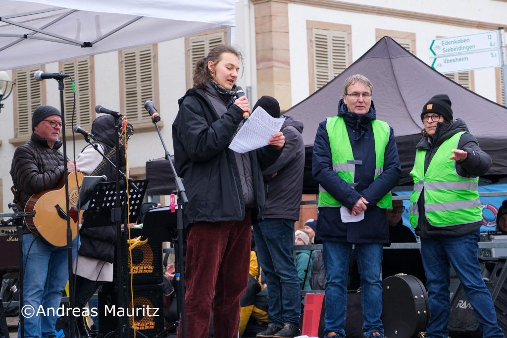 Mit der Eröffnung und der Begrüßung durch unsere erste Vorsitzende Tanja, Sebastian von ver.di und unserem Bündniskoordinator Björn machten wir von Anfang an deutlich, was der Konsens des Tages sein wird: Wir sind laut, wir sind bunt, wir sind solidarisch und wir sind friedlich. Dies fand bei den Menschen, die in Annweiler zusammenkamen, breite Annahme. Menschen auf der Kundgebung waren bunt durchmischt: Annweilerinnen, die sich gegen rechte Hetze in ihrer Stadt stellten, Gewerkschaften, Lokalpolitikerinnen, Kirchen, die Omas gegen Rechts, das Offenen Antifaschistischen Treffen Landau und weitere, Antifaschistinnen bilden einen stellvertretenden Ausschnitt der Breite des Teilnehmenden. Zu unserer großen Freude bezogen die Menschen lautstark vor dem Hohenstaufensaal Stellung gegen Rechts. Offensichtlich war das für Tino Chrupalla schon ausreichend um sich, wie wir Presseinformationen entnehmen konnten, durch einen Keller hat in den Hohenstaufensaal eskortieren zu lassen. Nachdem wir alle gemeinsam dem Stadtrat der kleinen Stadt Annweiler und der Stadtspitze für ihren Mut, bis zuletzt wie “Löwenbezwinger” gekämpft zu haben, lauten und donnernden Applaus spendeten richtete Benjamin Burckschat, der erste Beigeordnete ein Grußwort die Menschen, die zusammengekommen waren. Ihm folgte ein kurzer Redebeitrag von Christiane Huber aus dem Stadtrat, stellvertretende Fraktionsvorsitzende der lokalen SPD-Stadtratsfraktion. Ein Antrag aus ihren Reihen sorgte dafür, dass die Stadt sich gegen die Vereinnahmung der in weiten Teilen rechtsextremen Partei erhob. Pfarrer Thomas Lang erinnerte daran, dass Hass nie gut sei. Einen emotionalen Höhepunkt Setzte Sabine von den Omas gegen Rechts, die sich mit ihre über 80 Jahren nicht zu schade war und keine Mühe scheute, um sich auf den Kleintransporter des AStA Landau zu quälen, der als Bühne diente. Von dort berichtete sie eindrucksvoll unter anderem von ihren eigenen Fluchterfahrungen zu berichten. Anschließend hatte David Rosenberg, der in der Vorwoche nur eingespielt werden konnte, das Wort. Als Vorsitzender des jüdischen Studierendenverbands Hinenu Rheinland-Pfalz und Saarland gab er uns einen Einblick in die jüdische Perspektive. Dass die Gewerkschaften jeglichen Widrigkeiten trotzen, demonstrierte Nils von der IG BCE. Trotz einsetzenden Sturms, kurzzeitigem Starkregens und Hagels ergriff er das Wort und betonte, wie Sozialabbau die Rechten beflügelt. Nach ihm hielt eine Aktivistin des OAT Landaus ihren Redebeitrag in dem Sie unter anderem auf Polizeigewalt und juristische Repressionen gegen Linksaktivistinnen aufmerksam machte und die Politik der Ampelregierung aber auch der Unionsparteien, wie bereits ihr Vorredner, kritisierte. Während ihres Vortrages kam es zu Störungen und Zwischenrufen, von denen wir uns als Verein für Toleranz und Menschlichkeit Südpfalz distanzieren. Demokratischer Diskurs kann nur unter Einhaltung einfachster Regeln des gesellschaftlichen Miteinanders funktionieren. Forderungen einer Rednerin das Mikrofon auszuschalten, lautstarkes überbrüllen, gehören hier ganz klar nicht dazu. Wir verurteilen solches Verhalten klar und distanzieren uns hiervon deutlich! Selbstverständlich werden wir die Vorkommnisse aufarbeiten, um in Zukunft besser darauf reagieren zu können. Gleichzeitig möchten wir betonen, dass es Menschen gab, die sowohl auf uns als auch auf die Aktivistin zukamen, um das Gespräch zu suchen und in einen konstruktiven Dialog gingen. Wir ermutigen Menschen so zu handeln. Demokratie heißt verschiedene Meinungen zu haben, darüber zu reden, ja auch zu streiten aber bitte in einem konstruktiven Rahmen. Abschließend machte Silke als Verdi-Vertreterin in ihrem Redebeitrag deutlich, warum die AfD eben keine Partei für „kleine Menschen”, keine Partei für Arbeiterinnen ist.