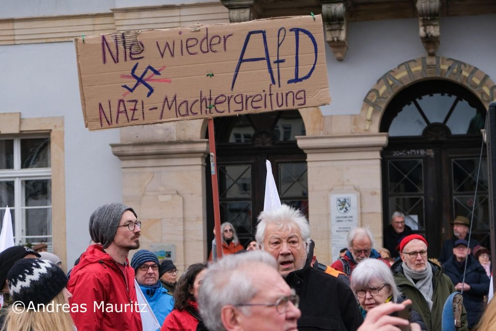 Nach einer kurzen, musikalischen Pause formierte sich unser Demonstrationszug zur evangelischen Kirche, bevor die AfD- Veranstaltung beendet war, da wir uns unsere Demonstration nicht von der AfD vorschreiben lassen. Wir trafen und begrüßten auf dem Rathausplatz die “Kidical Mass” Tour.